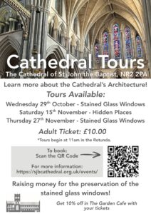With the season of tower tours now behind us, we’re excited to announce a new series of Cathedral Tours this autumn! Join us as we explore the fascinating architecture and stained glass artistry that make the Cathedral of St John the Baptist such a treasured landmark.
