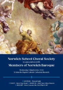 Norwich School Choral Society are delighted to join forces with local professional early music ensemble, Norwich Baroque, this spring for a choral concert of traditional and modern works.